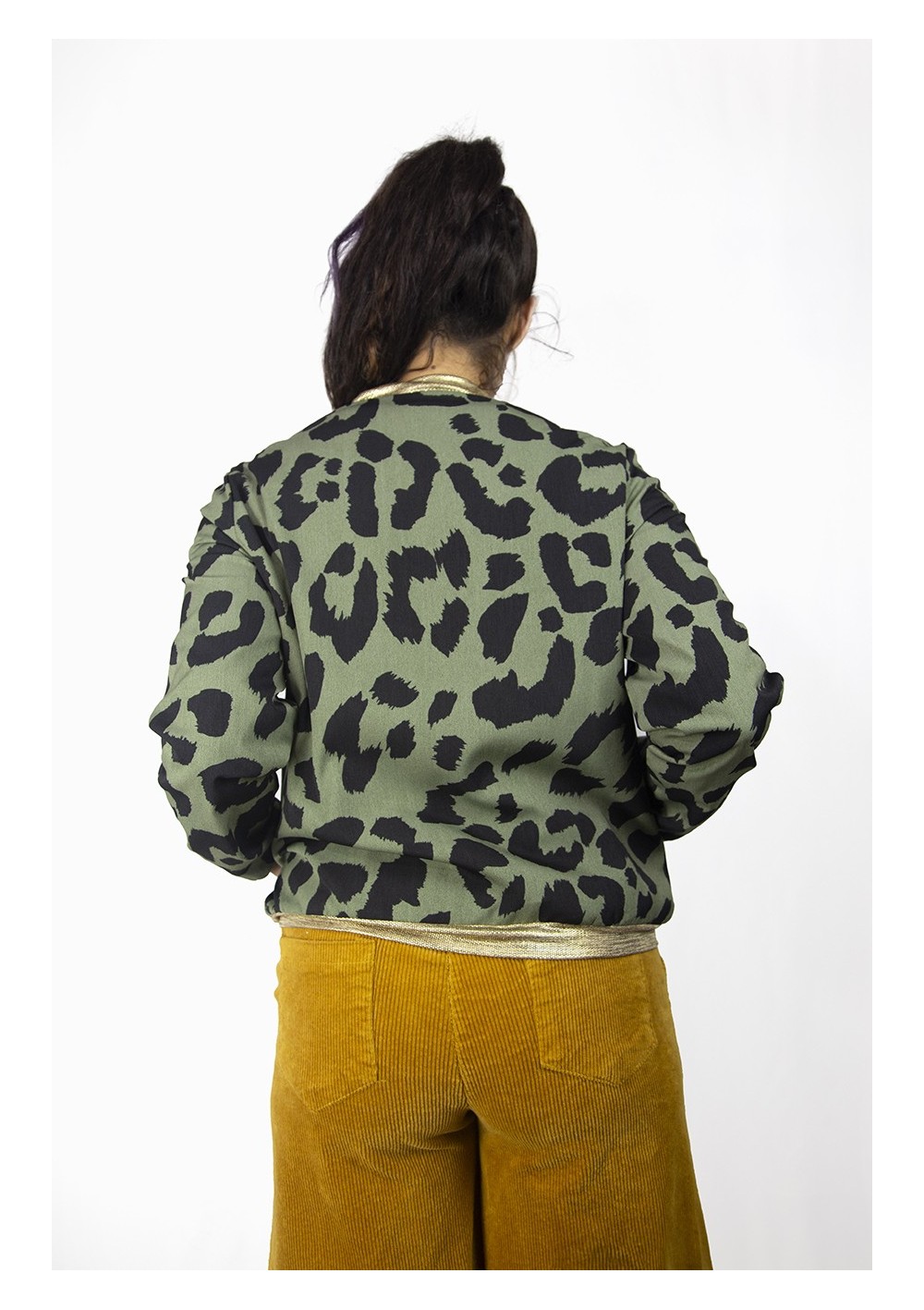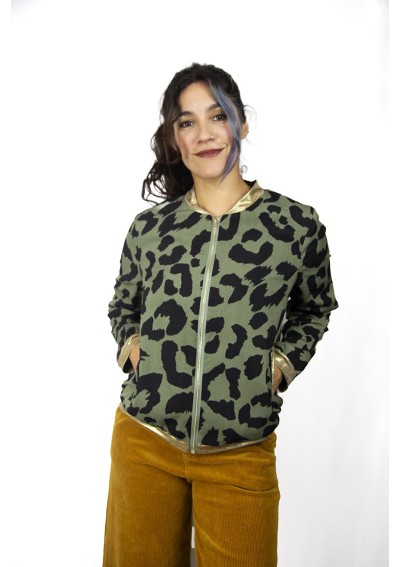 Bomber forrada. Detalles en punto elastizado a contraste en oro metalizado.
