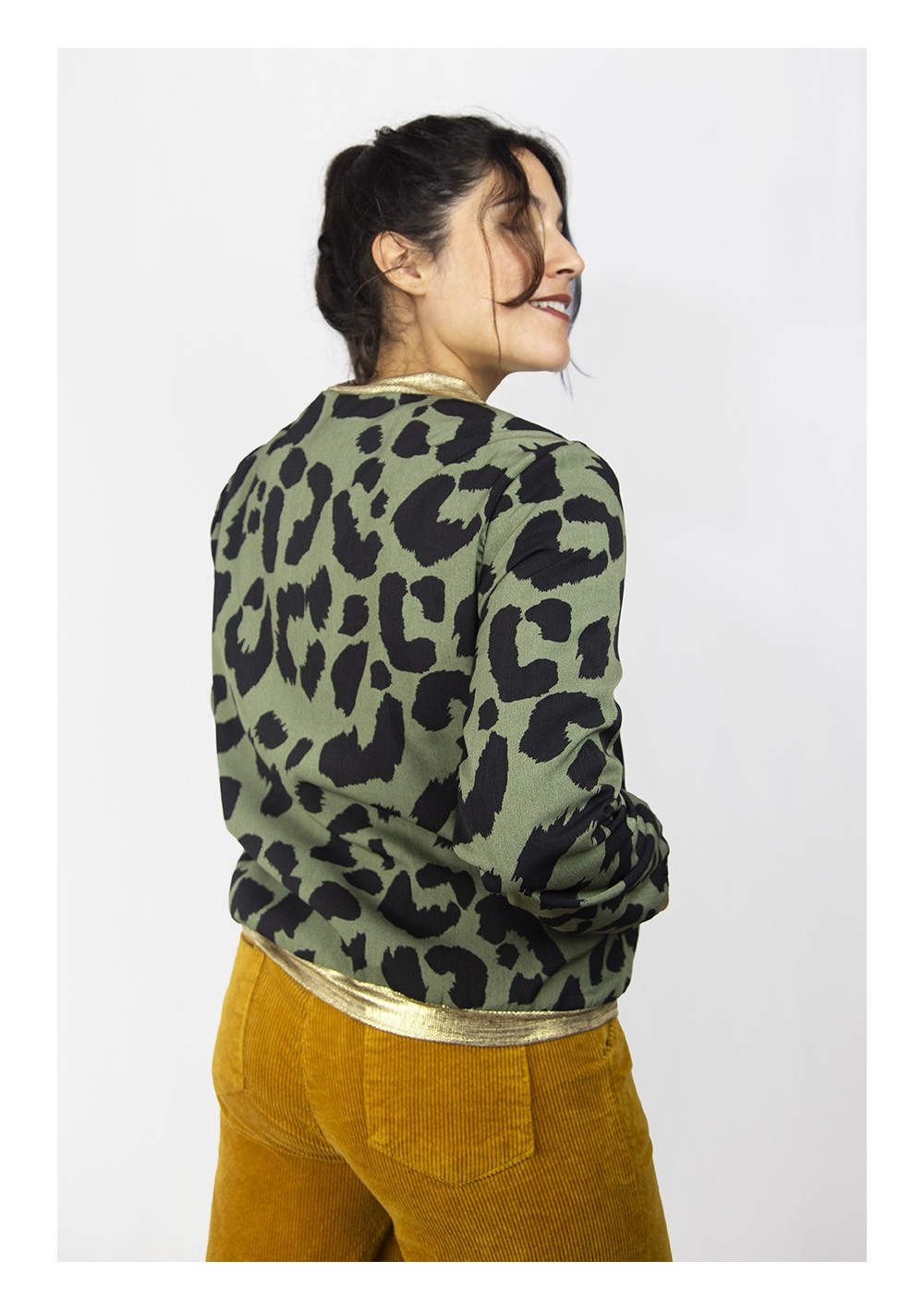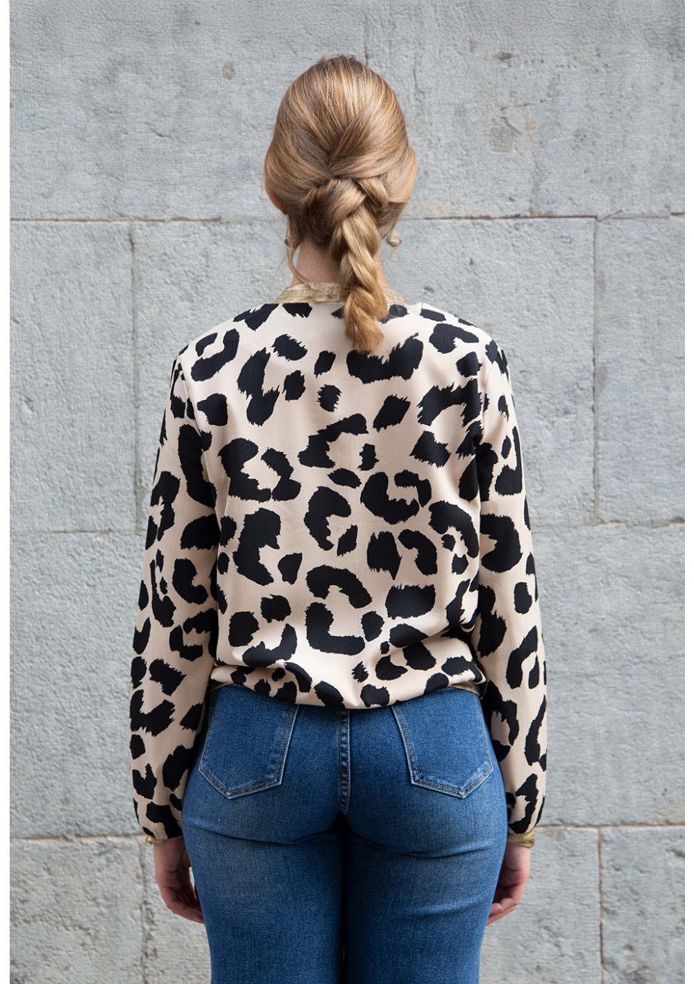 La modelo mide 1,70 cms. y utiliza la talla L.