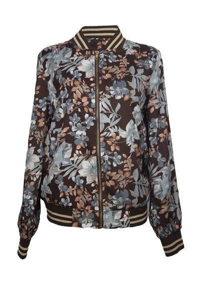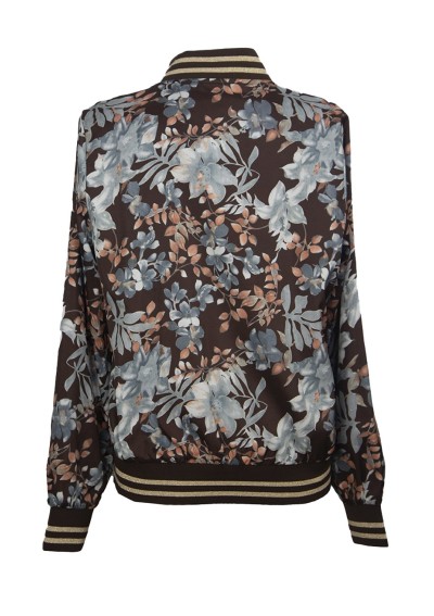 Bomber forrada. Tejido ligero. Diseño estampado. Cuello, cadera y puños en punto elastizado al tono con punto elastizado con doble línea dorada. Bolsillos. Cierre delantero con cremallera color oro.