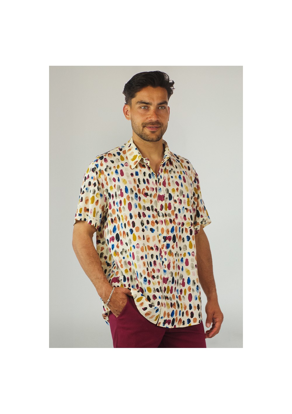 Camisa estampada manga corta de viscosa.