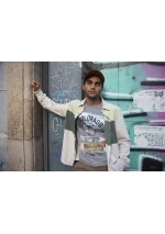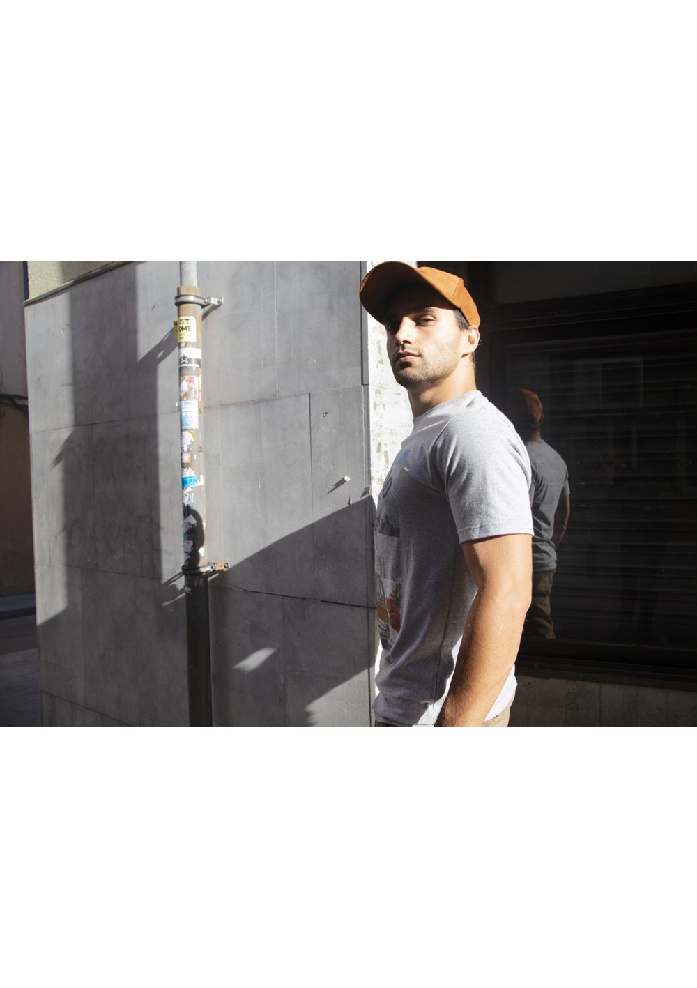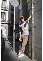 Slim fit short-sleeved T-shirt. Ribbed collar in matching color. Front print.