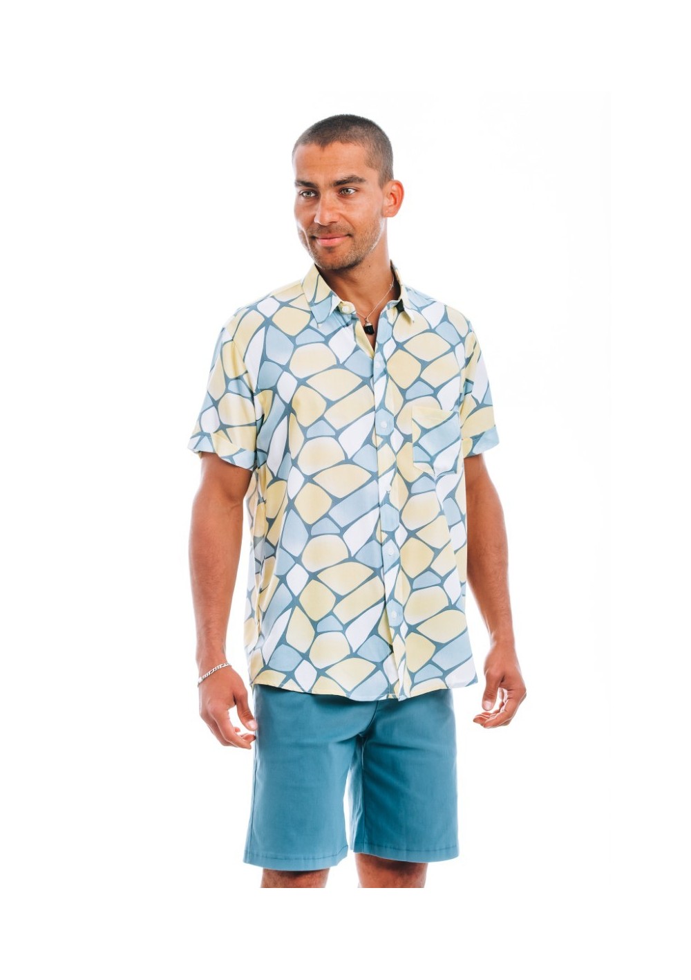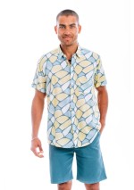 Straight-cut short-sleeved shirt, 100% viscose. Lightweight and breathable fabric. Soft to the touch.