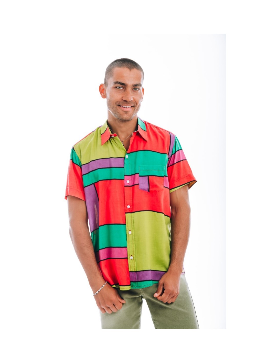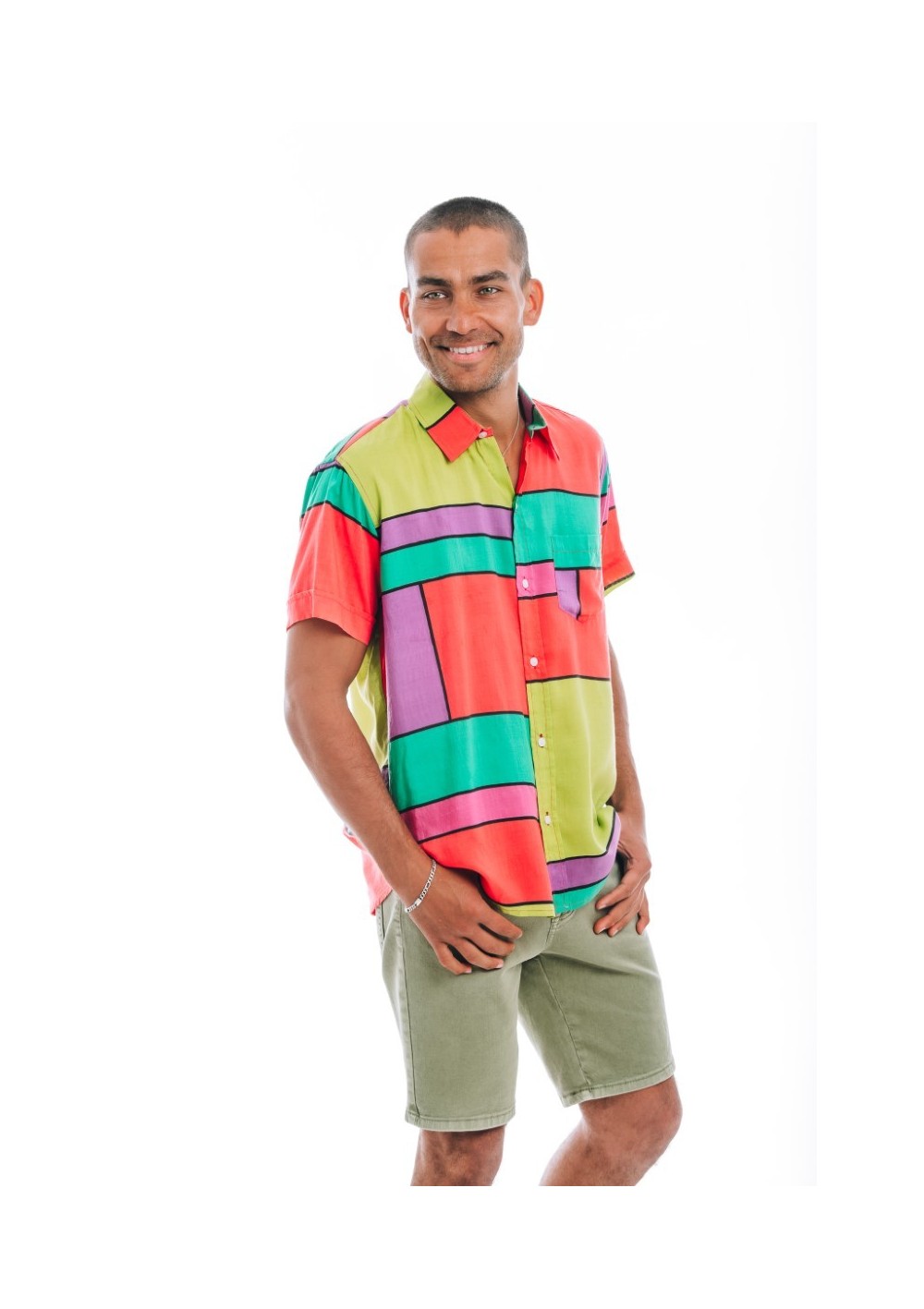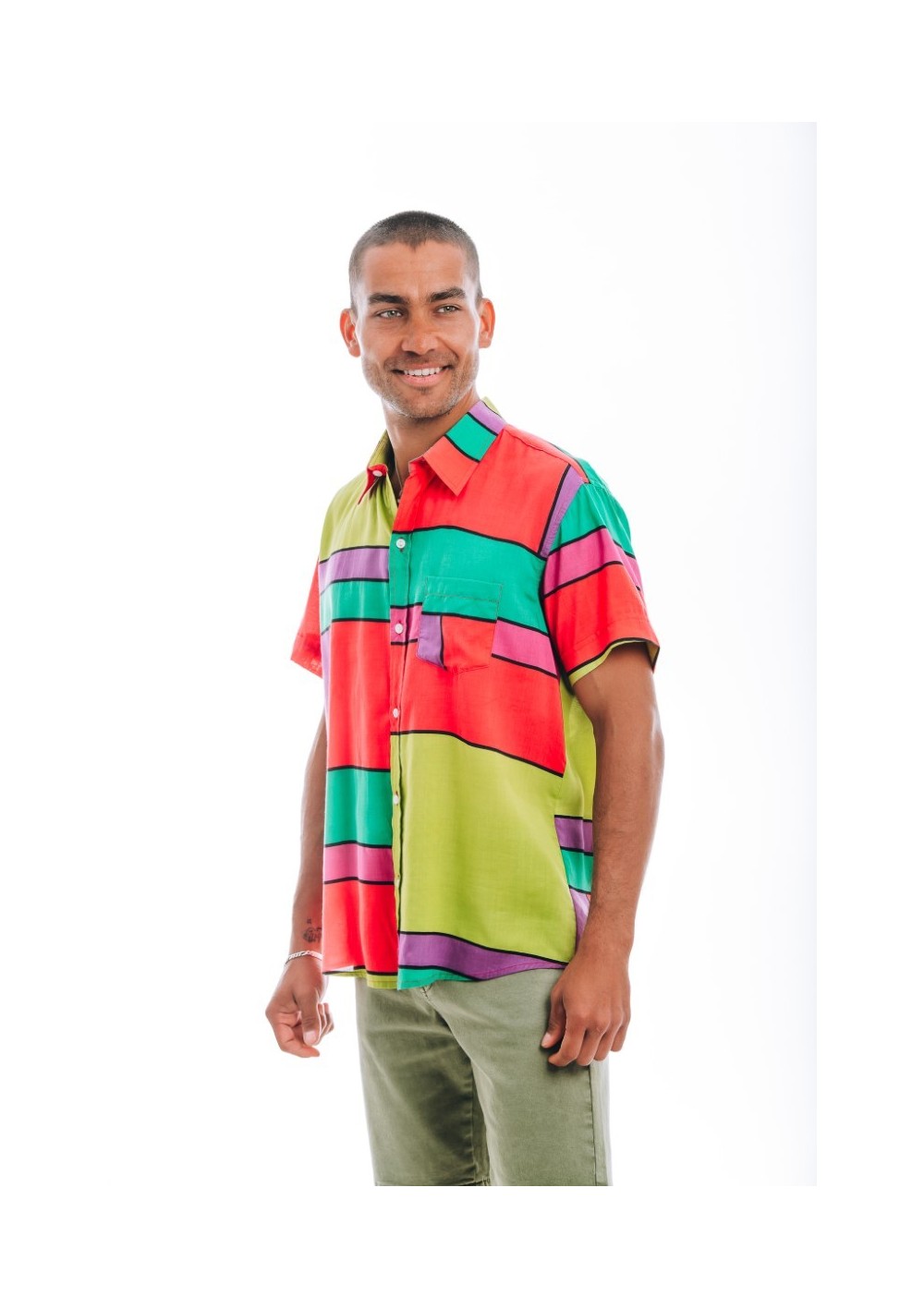 Camicia a maniche corte dal taglio dritto, 100% viscosa. Tessuto leggero e traspirante. Morbida al tatto.