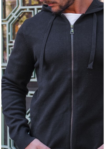 H CARDIGAN CAPPUCCIO NERO